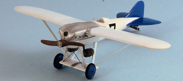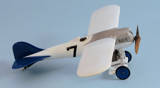 Construction is really quite easy when you look at things. The wing and upper fuselage is all one piece so I merely had to glue in the instrument panel and paint it. The rest of the fuselage is a single casting into which the seat, stick and rudder pedals go. The inside was painted wood, streaked, and sprayed with clear orange to provide a nice wood look. I then glued on the fin/rudder and took care of the seam that was there. Simple.