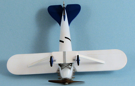 Decals are quite nicely done and about a scale too big. They really look like they should be on a larger scale kit. I did a bunch more touch-up painting, cut a pair of wires from stainless steel for the gear braces, and attached the prop. By this time, I was just pleased that I'd actually finished it and was eager to photograph it and plunk it on the display shelf.