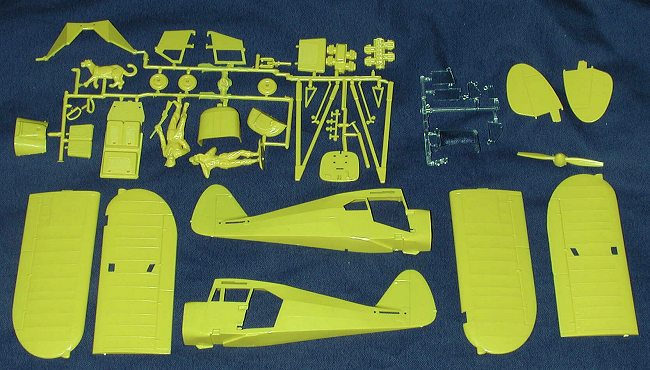 Monogram's kit dates back to the 50's and is very typical of the age with opening doors and a displayable engine. I have notes that state it is 1/48 scale, however it seems larger than that judging from the figures. Molded in a rather garish yellow plastic (to make it easier to paint, no doubt), the kit boasts raised detail that is very well done. The kit is also remarkably flash free, though this is the 1973 boxing and not the original 1956 one. It is just about as complete as you could want though light planes are not usually detail intensive anyway.