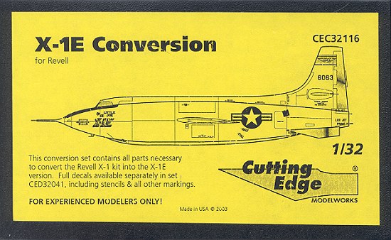 This set allows one to convert the Revell X-1 into the later X-1E. All of the components that make up the X-1E are provided in resin. That includes the new wings, ventral fins, wing roots, and the new canopy parts to replace those on the Revell 1/32 X-1 kit. The canopy itself is molded in clear resin to provide a combination hood and windscreen. The set can be done with the canopy unattached to show interior detail.