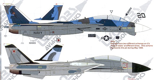 With the lower scheme, some rather tricky masking will be needed for the wings, but nothing beyond the abilities of an intermediate modeler. The kit of choice will undoubtedly be the Hasegawa Tomcat, but for those on a budget, the Monogram and Academy kits can be used as well.