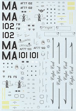 A small addendum sheet includes insignia and refueling door outlines. The main sheet includes all the other markings as well as the special tail markings for the Boss Birds of the 101FS/102 FW. Several of the small shadow decals are done separately to ensure good register.