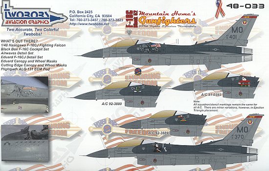 Staying with the USAF for this one, you get a choice of five different aircraft from the 389th FS based at Mountain Home, ID. Each of these planes has a very nice fuselage art selection as well as the mission markings that were applied when the planes were operating over Afghanistan. These are all F-16CJ aircraft so be sure to get the proper kit for this one as you don't want to embarrass yourself by having the wrong variant!