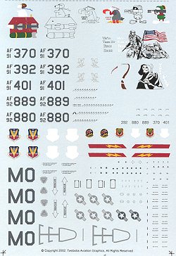 The sheet includes all the serials and artwork for all five aircraft. There are enough common ones to do two of them. Part of the instruction sheet gives a history of the CBU-31 JDAM and CBU-103 WCMD, which were first used during Enduring Freedom. I'll let you wade through the acronyms and good luck finding these weapons as there was no info on finding them on the sheet.