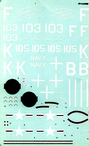 Next is one from the Oakland Air Reserve. You have seen shots of this aircraft in a number of books. It has an orange fuselage band as commonly used by the reserves and a red nose stripe. There is a section of dark sea blue provided on the decal sheet to put over the orange stripe.