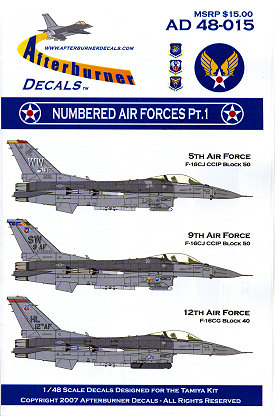 | SHEET: | Afterburner Decals 48-015: Numbered Air Forces part 1 |