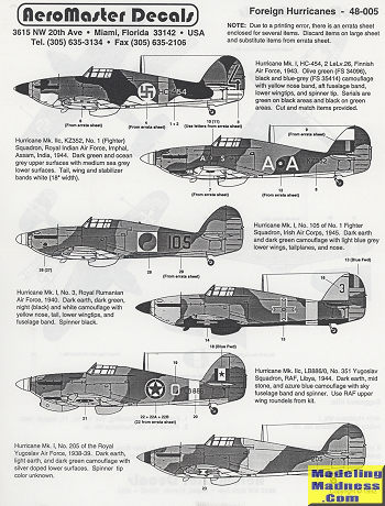 nice variety on this sheet with the first being a Finnish Hurricane I from 2