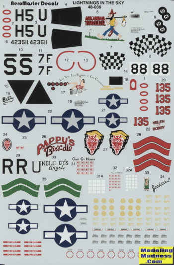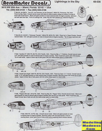 this sheet and they are all late war P-38J/Ls. The probable reason for this is