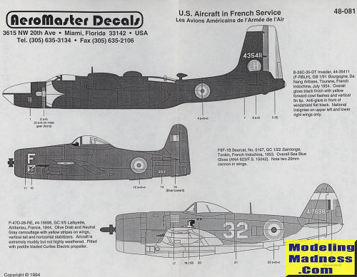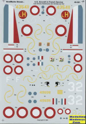 Another early sheet from 1994 contains three US aircraft in French markings. After WWII, it took a while to get the French aviation industry back up to speed so they used a number of surplus US aircraft.