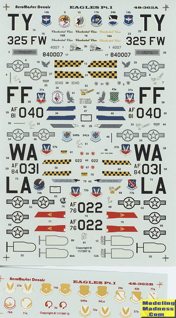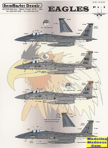 contains markings for four F-15A/C Eagles from various time periods. You will