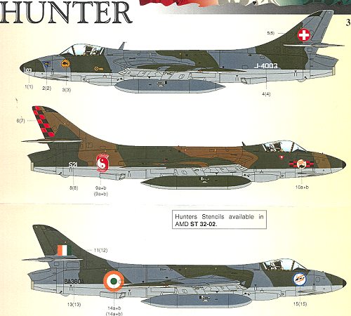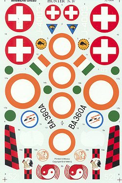 To me, one of the best kits to be released in the last several years has been the Revell 1/32 Hawker Hunter. The kit is superbly done and is of an aircraft that most aviation enthusiasts will include in the top ten jets of all time. Yet, it has not sold well past its initial issue and it is a real mystery as to why that is the case. Even on the show circuit around here, in the last three/four years I've been attending shows, I've seen but one. Frankly, I'm stymied and I'm sure Revell is as well. So is Aeromaster as it produced four great sheets for this plane back in 1998 and they have also not done as well as one would have hoped.