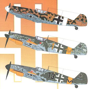 Finally, from 8./JG 52 is Black 13, Gunther Rall's mount of the time. It is also in RLM 74/75/76 but with heavy splotches of RLM 74 on the fuselage. It also carries full Eastern Front markings.