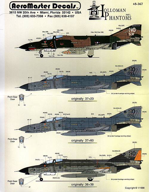 From Aeromaster comes a great sheet on Phantoms of the GAF training squadron, the 20FS/49FW at Holloman AFB, New Mexico. These aircraft were in residence in October 1997, the same time the F-4 Phantom Society held their annual convention at the base. I bought this sheet as I had photographed these aircraft during that time period and wanted to model one of them. To see images from that trip go here.