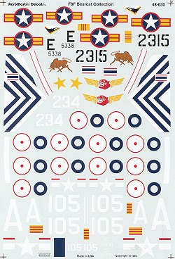 This sheet has a nice mix of aircraft, though I should mention that most of them are the -1 variety with the short tail. If you are actually using the Testors/Hawk kit, you'll have to do a bit of surgery.