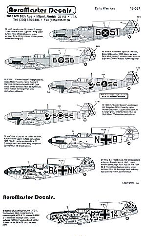 Aeromaster Sheet # 48-037 for Bf-109B/C/D