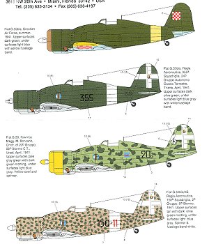 Next is an R.A. plane from the 355th Squadriglia. It is in Dark Green over light grey with a white fuselage band as carried by just about all Italian aircraft as it designated the Mediterranean Theater.