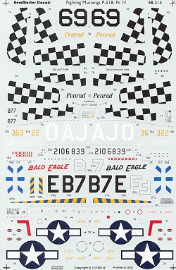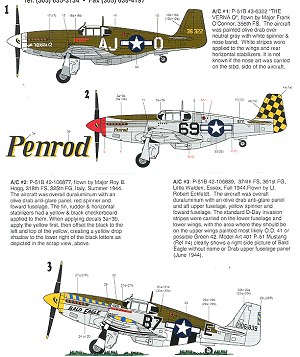 Suggested kits for this sheet are by Accurate Miniatures, Monogram or Tamiya. There are enough common markings on the sheet to do one plane.