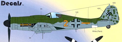 The 190A-8 from 5./JG 4 is in RLM 74/75/76 and sports the black and white rear fuselage band. These bands are given as decals, which is a real help.