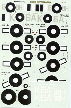 There is a small addendum sheet in with the set. Aeromaster realized that the codes on the first two planes were white and not sea grey so provides those codes in the proper color. The decals will have to be cut prior to use.