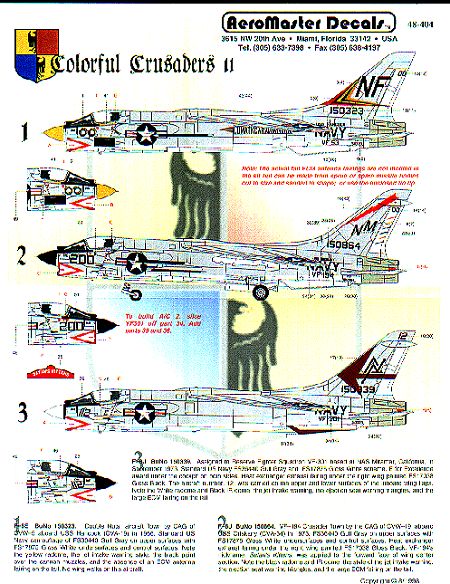 Once again, Aeromaster has given us a superb sheet, this time for the F-8 Crusader. This, of course for the Monogram Kit.