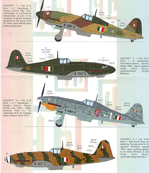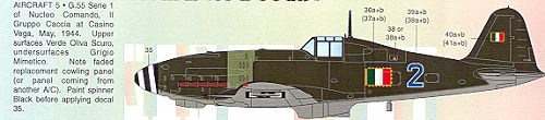 First is nice five color camo'd G.55 of 1 Sq/II Gruppo in May of 1944 with a typical splinter pattern used by this unit.