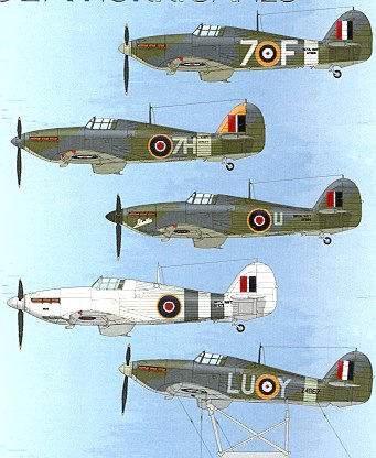 Finally, a CAM Hurricane Ia from 9 Group, RAF. These served aboard specially modified ships to serve as convoy protection. These were one-shot aircraft. Once launched, the aircraft had to make a water landing near another ship so the pilot could be rescued.