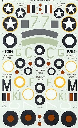 First is a Canadian Mk XII from 800 Sq during Operation Torch, hence the US insignia. It was figured that the French would be less likely to fire at American planes than at British ones, especially since the Brits tried to sink the French fleet shortly after the French surrendered to the Germans in 1940. Undersurfaces may have been sky grey vice sky.