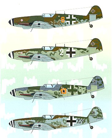 Finally,#209 is one sent to Italy in early 1945. It then had the RSI markings painted on it and was flown by Italian pilots. It is in the 'normal' colors of the itme of RLM 81/82/76