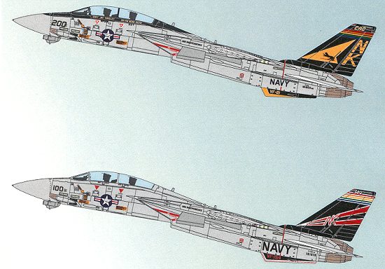 F-14 decal sheet. Both aircraft are from the USS Independence, circa January