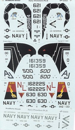 The aircraft on this sheet come from VAQ-132 aboard the USS Enterprise and shows the CAG bird from this unit. Next is a VAQ-141 aircraft from the USS Theodore Roosevelt, and finally, a VAQ-133 plane with probably more color in it than the other two combined!