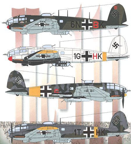 Finally, from III./KG 26 comes this H-4 version. It appears to have had RLM 75 or 77 grey applied to the upper surface of the aircraft, though in a more solid pattern than the previous aircraft.