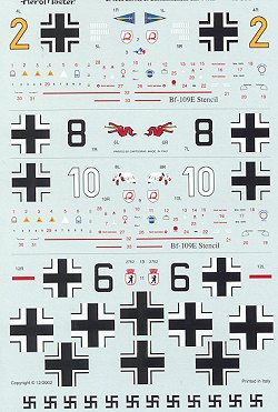 Bf-109 decal sheet. This particular sheet is for Battle of Britain aircraft and