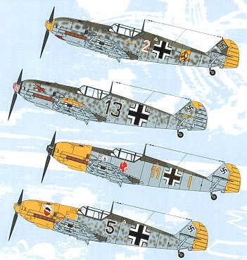 First is a Bf-109E-3 from 4/JG 51. White 2 is a rather unusual