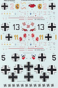 As usual, there are enough stencils and common markings for two of the four aircraft provided on the sheet. I highly recommend obtaining the references to be sure of the various head armor as not all of the planes carried it or had a different design from what's shown in the drawings. For those of you wanting to do an E-1 variant, you can either build the Hobbycraft kit or get the Hasegawa version that has you do a lot of cutting and filling to get things right. We of the lazy brigade will gravitate towards the Hobbycraft kit.