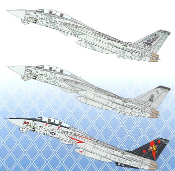 Again, the rather pricey Hasegawa kit is recommended. There is an Italeri F-14B, but from what I know about it, you should stay very far away from it and spend the extra moolah needed for the Hasegawa version. There appears to be enough 'stuff' on the sheet to enable all three planes to be built using sheet decals. Good move.