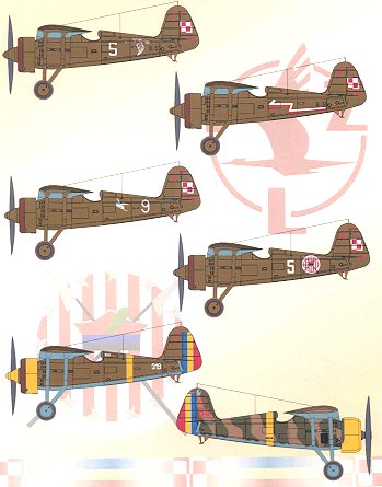 aircraft on the sheet, most of them in Polish Khaki over light blue.