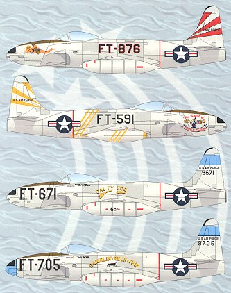 Finally, another 35 FBS Shooting Star is 'Ramblin=Reck=TEW' (hey, I don't know what it means either). This plane actually shot down a North Korean IL-10 in July of 1950. Note that there are two blue tail bands. This one gets the one with the black stripe outline to match the nose.