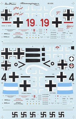Finally another A-8 with RLM 83 in place of the RLM 74 in the camo scheme. This one has a back nose band and was with 8./JG 300. The Reich Defense band is supplied as a decal.