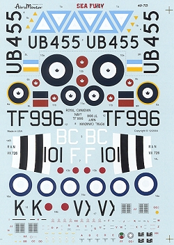 Finally, a Korean war vintage FB.11 from the Royal Australian Navy. This is in EDSG over Sky with black/white ID bands. Those on the wings you'll have to paint on.