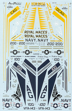 Next is a CAG bird from VFA-143 with the markings in a dark blue. Though the blue shows well on the scan, in person the blue is so dark as to be nearly indistinguishable to my eyes from black.