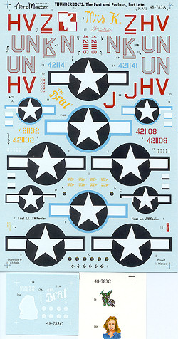 From the look of things, you can do two planes with the provided insignia as long as one of the two has the light blue surround insignia. The instructions provide all sorts of neat snippets of information so is quite helpful. You will also note that this sheet includes some of those high quality nose art markings as well as the white backgrounds for them.