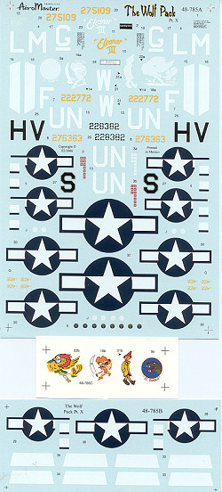 As with some other sheets in this series, there is an additional sheet for insignia and one with the highly detailed nose art. These nose art markings fit atop white backgrounds. One carefully cuts out the artwork as the printing process places them on a sheet with a solid clear carrier.