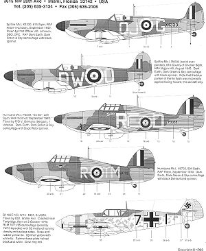 The two Spitfires are Mk.Is in dark green/dark earth over sky. The first flown by Johnnie Johnson of 616 Sq and the second from 610 Sq.