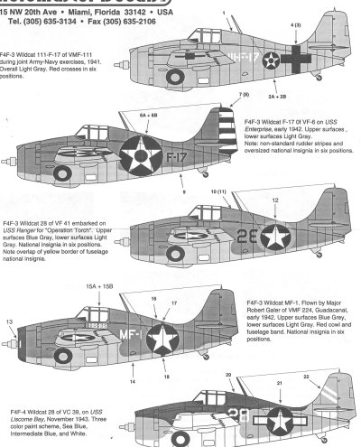This is a very early Aeromaster sheet as you can tell from the grey shades instruction sheet. It covers five F4fs, each with different insignia, a nice touch.