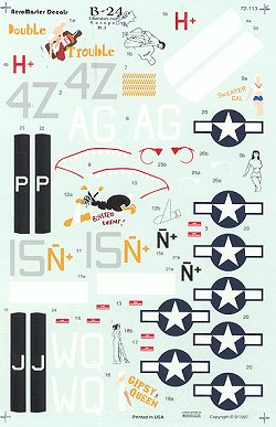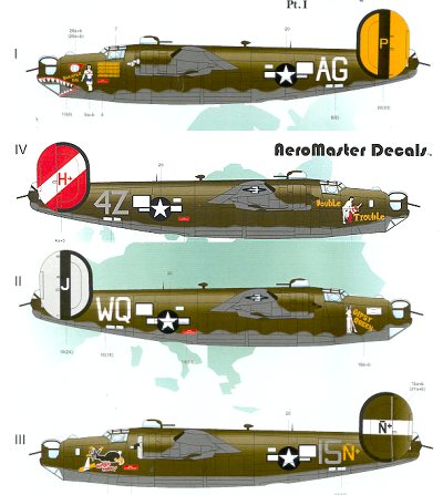 sheet has four B-24H/J Liberators on it. All are painted in Olive Drab over