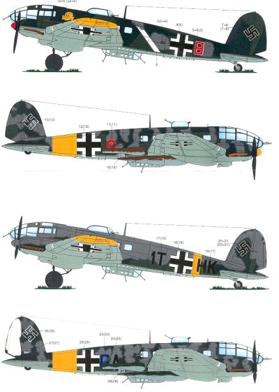 Next, from II./kg 26 is this Eastern front bird with its standard bomber scheme overpainted with large RLM 75 or 77 areas on the upper surface. It has a slimmer than normal fuselage band.