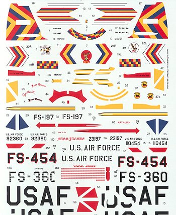 All of the markings offer decals for the tip tank fin colors, but you may be better off to paint them on. Same with the nose gear doors on the first scheme as you'll have to paint the speed brake anyway!