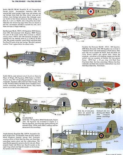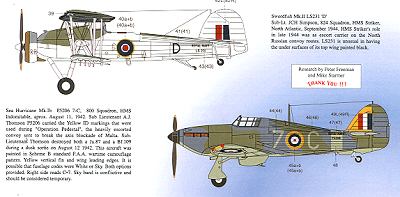 Finally is this 800 Sq Sea Hurricane Ib from August of 1942. It is in standard colors but sports a yellow fin and wing leading edges. Both white and sky codes are provided.