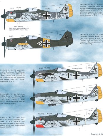 Finally, this III./JG 2 plane has a red lower cowling to set it apart from the rest on the sheet.