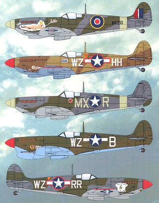 From the 307th FS/31st FG, is this Spit Vb in temperate scheme while the group was based in England. No leading edge yellow markings and the old RAF markings have been completely over-painted in fresh Ocean Grey.